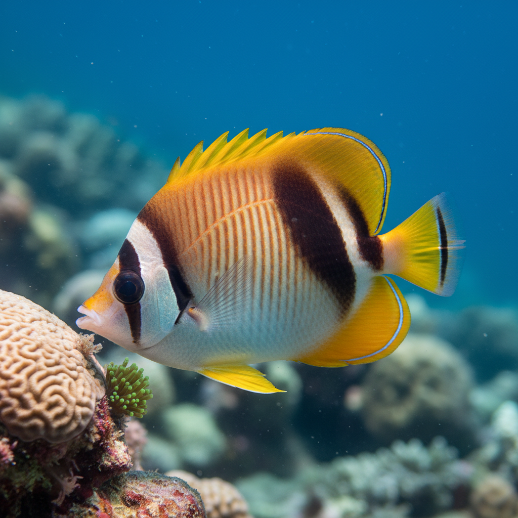 The ecological context of the Tahitian Butterflyfish includes the interplay of a complex food web, where it plays the dual role of both predator and prey. It is found in areas of both high biodiversity and shelter, demonstrating the significance of coral reef structures as critical habitats for this species and many others. Unfortunately, these beautiful ecosystems face threats from climate change and human activity, leading to increased awareness of their preservation within the aquarium trade.