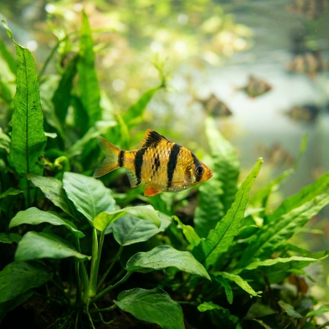 A bold, striped barb with a reputation for fin-nipping. Active, colorful, and entertaining—but must be kept in large groups to manage behavior.