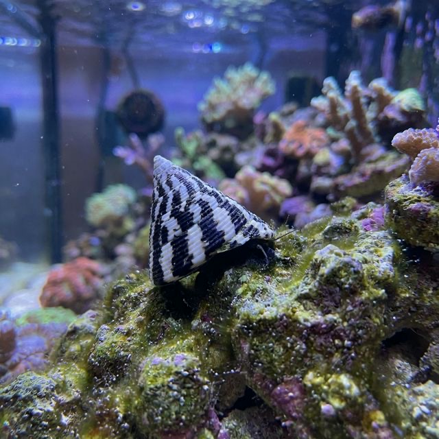 These snails typically occupy the substrate level of the aquarium, actively grazing and moving about the bottom. Occasionally, they may venture to higher surfaces, but they are not known to display vertical surfing behavior like some species of fish. Their gentle demeanor makes them a perfect candidate for a reef setup, as they are non-aggressive and will not pose a threat to other species.