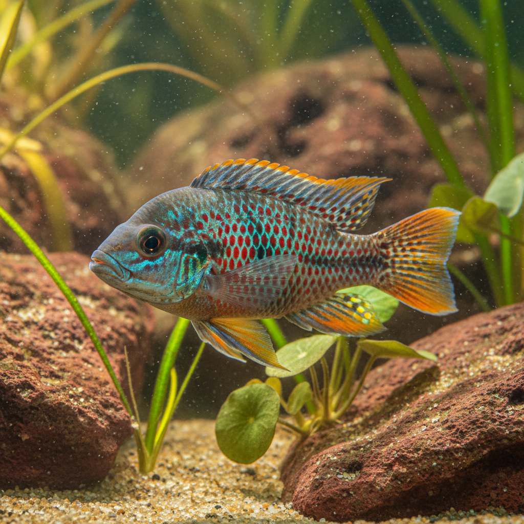 To create an ideal environment for the Turkana Jewel Cichlid, it is recommended to have a minimum tank size of 75 gallons. This ample space allows them to establish territory and reduces stress associated with confinement. The substrate should consist of sand or fine gravel, supplemented with smooth rocks and caves to mimic their natural habitat. Ideal lighting is moderate, as they thrive in conditions that replicate the dappled sunlight found in their native waters. Incorporating hardy aquatic plants can enhance the aesthetic and provide cover; however, be aware that these cichlids may uproot softer species.