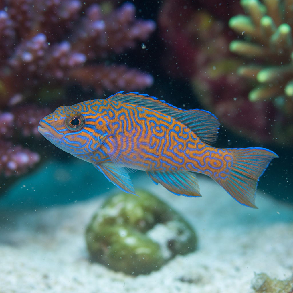 In the aquarium hobby, the Twistii Wrasse is valued not only for its beauty but also for its energetic swimming behaviors and interesting personality. Known for their active nature, these fish are often seen darting around rocks and corals, foraging for food and exploring their surroundings. As one of the more dynamic wrasse species, they can provide endless entertainment and contribute to the overall liveliness of your marine setup. Considered a relatively hardy species for experienced aquarists, the Twistii Wrasse can thrive in well-maintained environments, making it a suitable choice for both novice and advanced fish keepers alike.