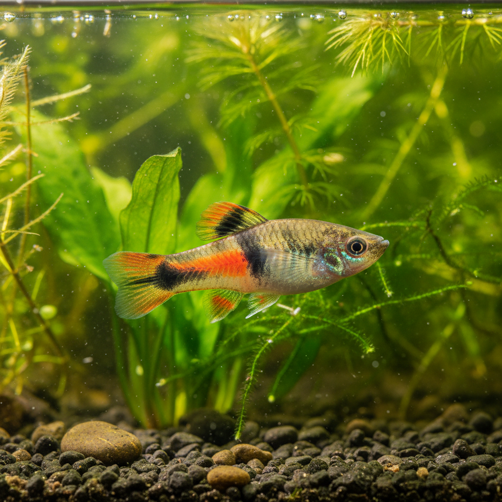 The Variatus Platy hails from the freshwater rivers and streams of Central America, specifically in regions like the Rio Pánuco basin in Mexico, through to parts of Guatemala. This species typically inhabits shallow waters with ample vegetation, which provides them both shelter and breeding grounds. The natural environments where Variatus Platies are found often feature slow-moving water, which is rich in organic materials such as decaying plant matter. These habitats are primarily characterized by their clear waters, although areas with slightly more turbid conditions can also be suitable, allowing for the growth of various aquatic plants that are essential for their well-being.