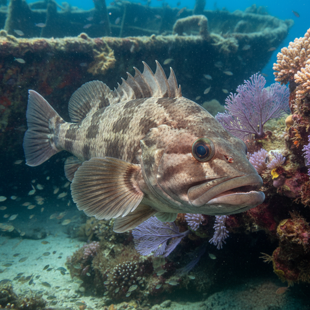 The Wreck Fish is primarily found in the warm, temperate waters of the Atlantic Ocean, with a focus on the continental shelf and deeper waters ranging from Florida to Brazil. Its natural habitat includes rocky outcroppings, reefs, and underwater structures, often near shipwrecks and submerged features that provide shelter and hunting grounds. The Wreck Fish typically inhabits depths of up to 600 meters, primarily residing in clear to moderate water conditions. Its preference for deeper, structured environments makes it less visible to casual snorkelers and divers, further adding mystery to its life cycle.