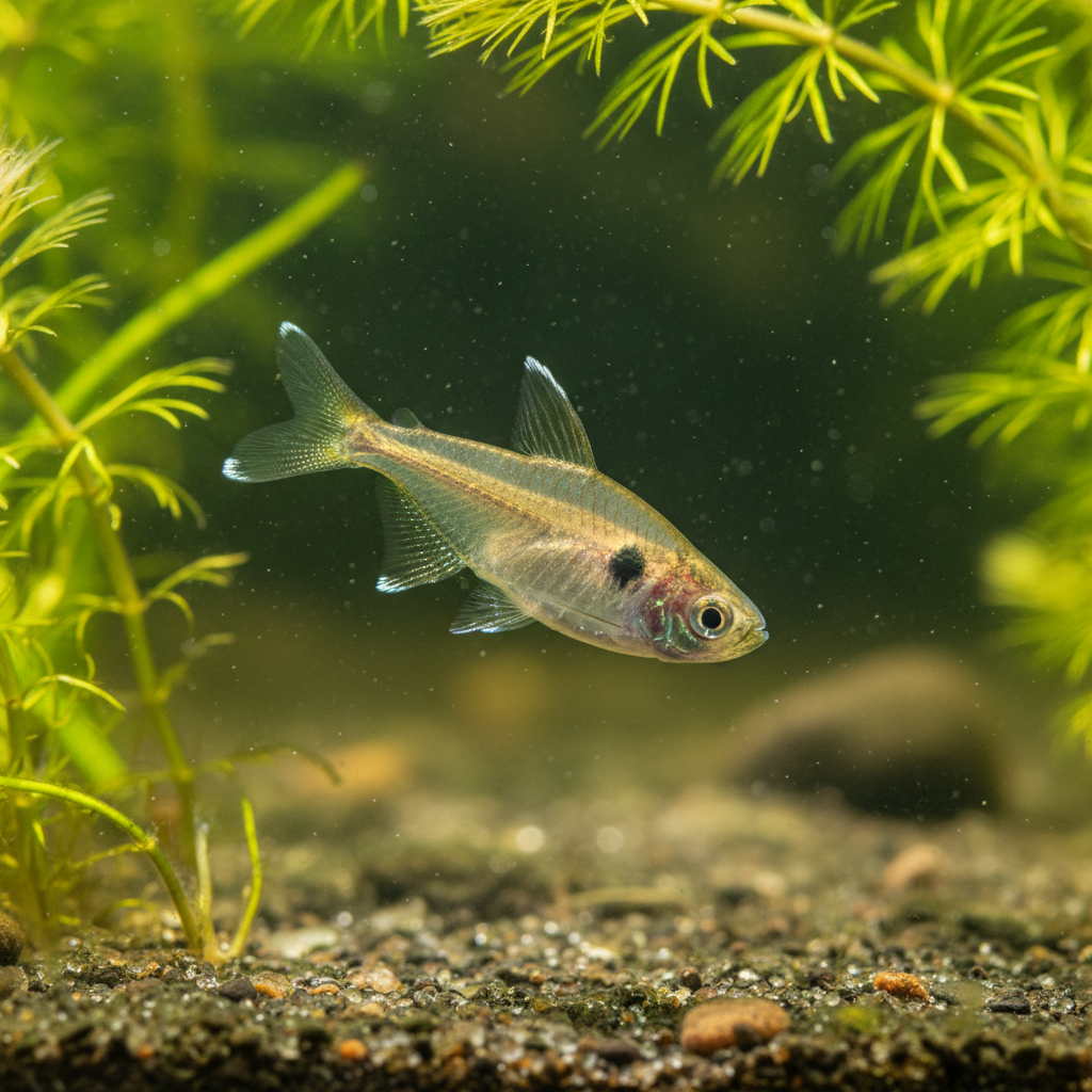 In terms of tank setup, a minimum tank size of 20 gallons is advised to accommodate a small school of X-Ray Tetras, ideally 6 or more individuals. A sandy or fine gravel substrate mimics the natural riverbed while providing them a comfortable bottom to explore. Emphasizing an environment rich with plants, aquarists should incorporate hardy species such as Java fern, Amazon sword, and floating plants that offer cover and shade. Lighting should be moderate to dim, which helps emphasize the Tetra’s colors while reducing stress from overly bright conditions.