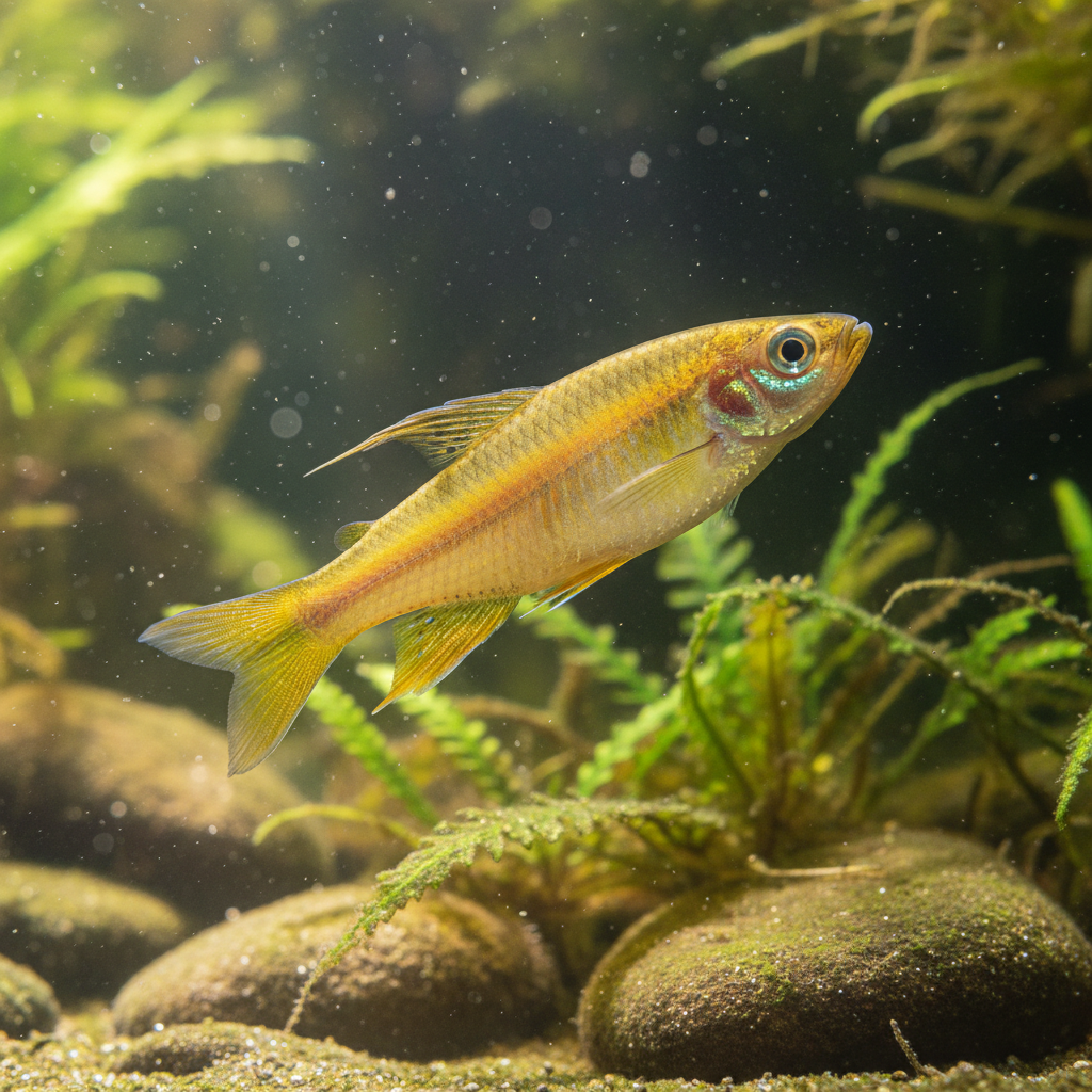 The Yellow Rainbowfish, scientifically known as Melanotaenia herbertaxelrodi, is an exceptionally captivating species known for its vibrant coloration and graceful swimming style. Found predominantly in the freshwater systems of Papua New Guinea, this fish displays a body that features an alluring blend of yellow, blue, and green hues, which intensify under appropriate lighting. This stunning aesthetic has made the Yellow Rainbowfish a prized addition to aquariums, where it brings life and dynamism to aquatic displays. As a relatively peaceful species, it is particularly favored by both novice and seasoned aquarists.