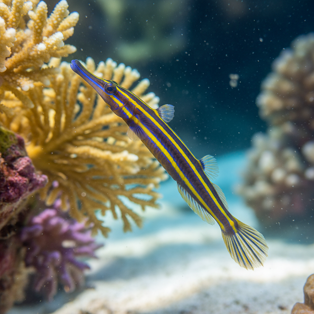 The Yellowbanded Pipefish (Doryrhamphus pessuliferus) is a stunning saltwater fish known for its unique appearance and behavior.