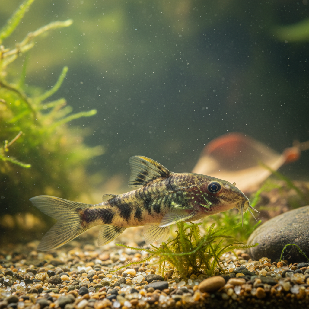 The substrate is particularly pivotal, as softer materials like fine sand or smooth gravel are recommended; this allows the fish to forage comfortably without injuring their sensitive barbels. When it comes to lighting, a subdued brightness is preferred to simulate their natural habitat; therefore, using floating plants or thicker vegetation can offer both shade and hiding spots for the Yellowfin Elegans Cory. Incorporating live plants not only enhances the aesthetics of the tank but also contributes to the overall well-being of the fish by maintaining water quality.