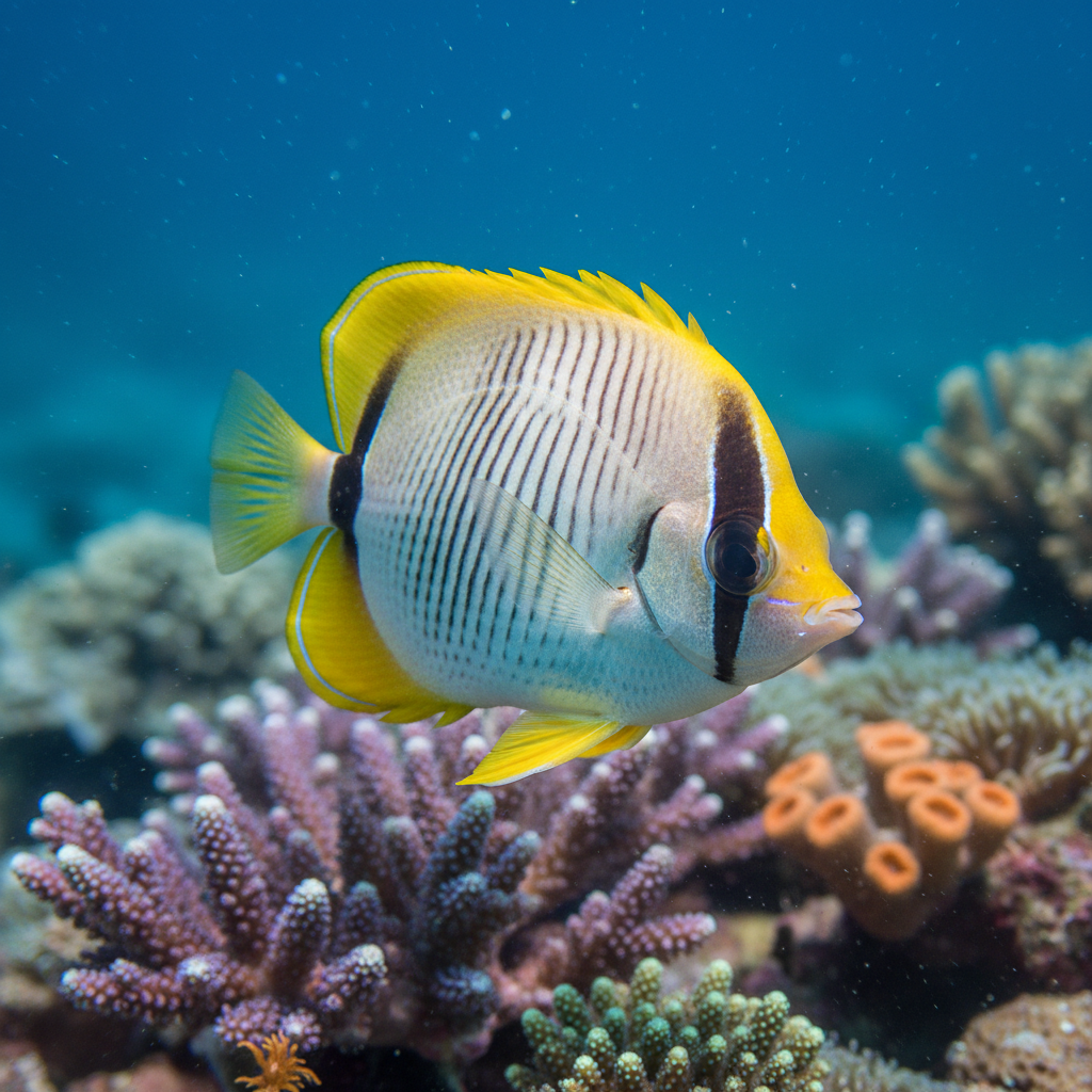 The Yellowhead Butterflyfish (Chaetodon Xanthurus) is a stunningly beautiful marine fish that captivates aquarists with its vibrant coloration and iconic shape. Known for its striking yellow head and contrasting black bands, this species is a true marvel of the ocean. Typically found in coral reefs, the Yellowhead Butterflyfish showcases a rigid, disc-shaped body that allows it to navigate through complex environments with ease. Its vivid colors not only serve aesthetic allure in home aquariums but also play a significant role in its natural habitat, with the bright hues providing camouflage among the corals and marine flora.