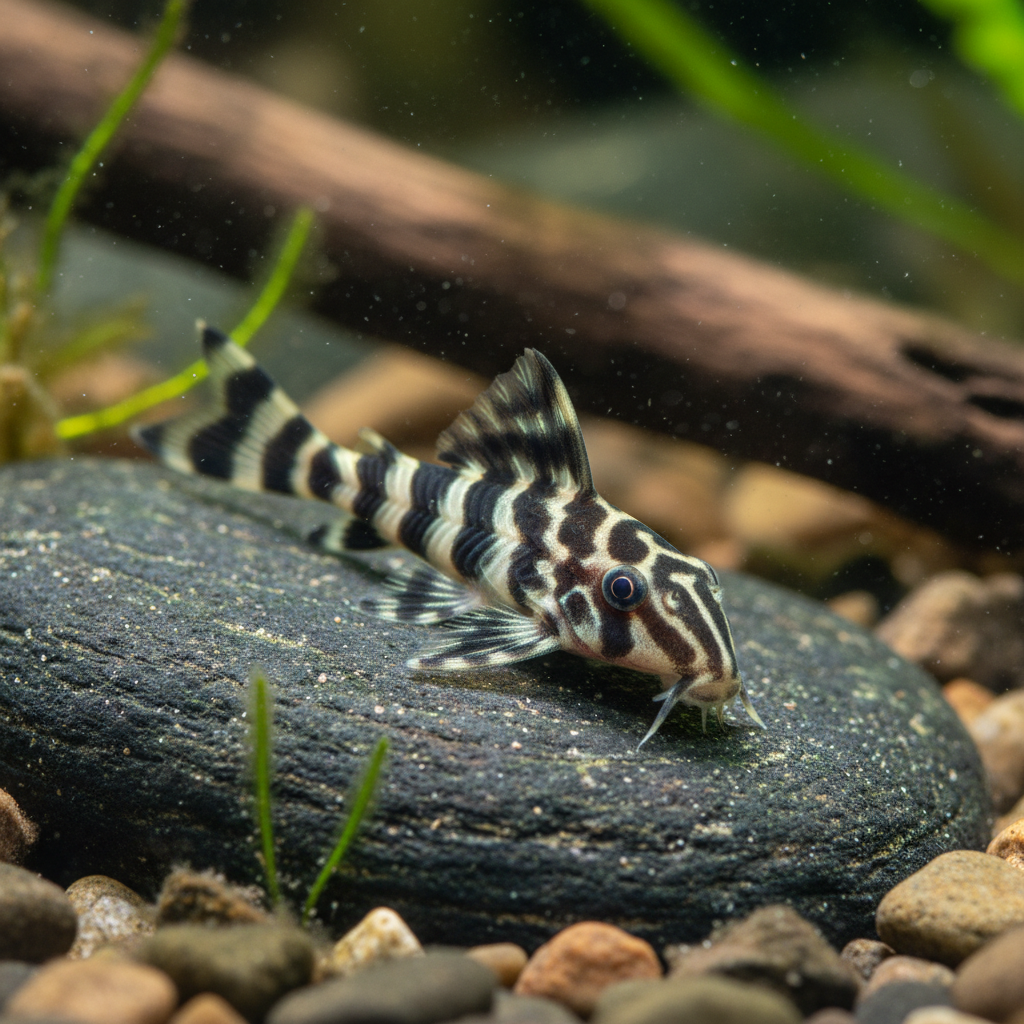One of the most iconic and beautiful fish in the world, the Zebra Pleco is famous for its stunning jet-black and brilliant white stripes and its status as a gem of the Amazon.